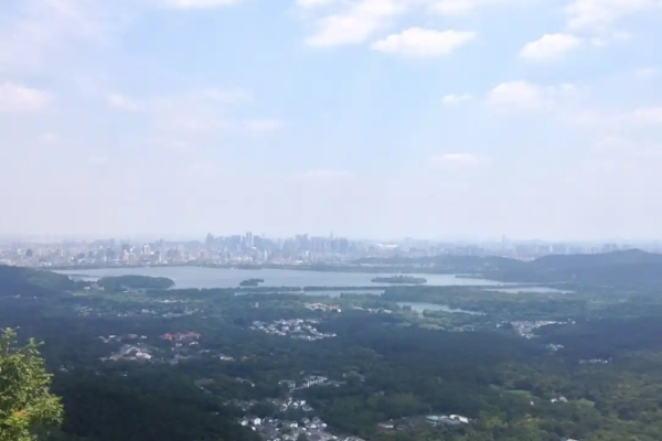 北高峰群山屏绕,湖水镜涵,由上视下,歌舫渔舟,若鸥凫出没烟波,远而益微,仅规其影。西望罗刹江,若匹练新濯,遥接海色,茫茫无际。张公亮有句:“江气白分海气合,吴山青尽越山来”。