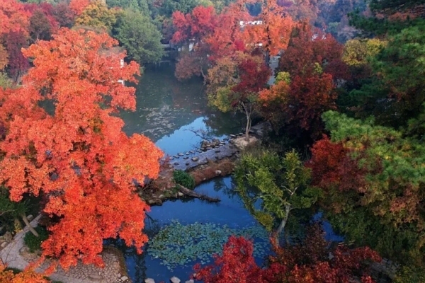 山体海拔221米,以“怪石、清泉、红枫”三绝著称,奇石如“万笏朝天”,白云泉被誉为“吴中第一水”,明代范仲淹后裔所植古枫林现存121株古枫与3000余株接班枫,形成华东最大枫香群落,秋日红叶景观与北京香山等并称中国四大赏枫胜地。